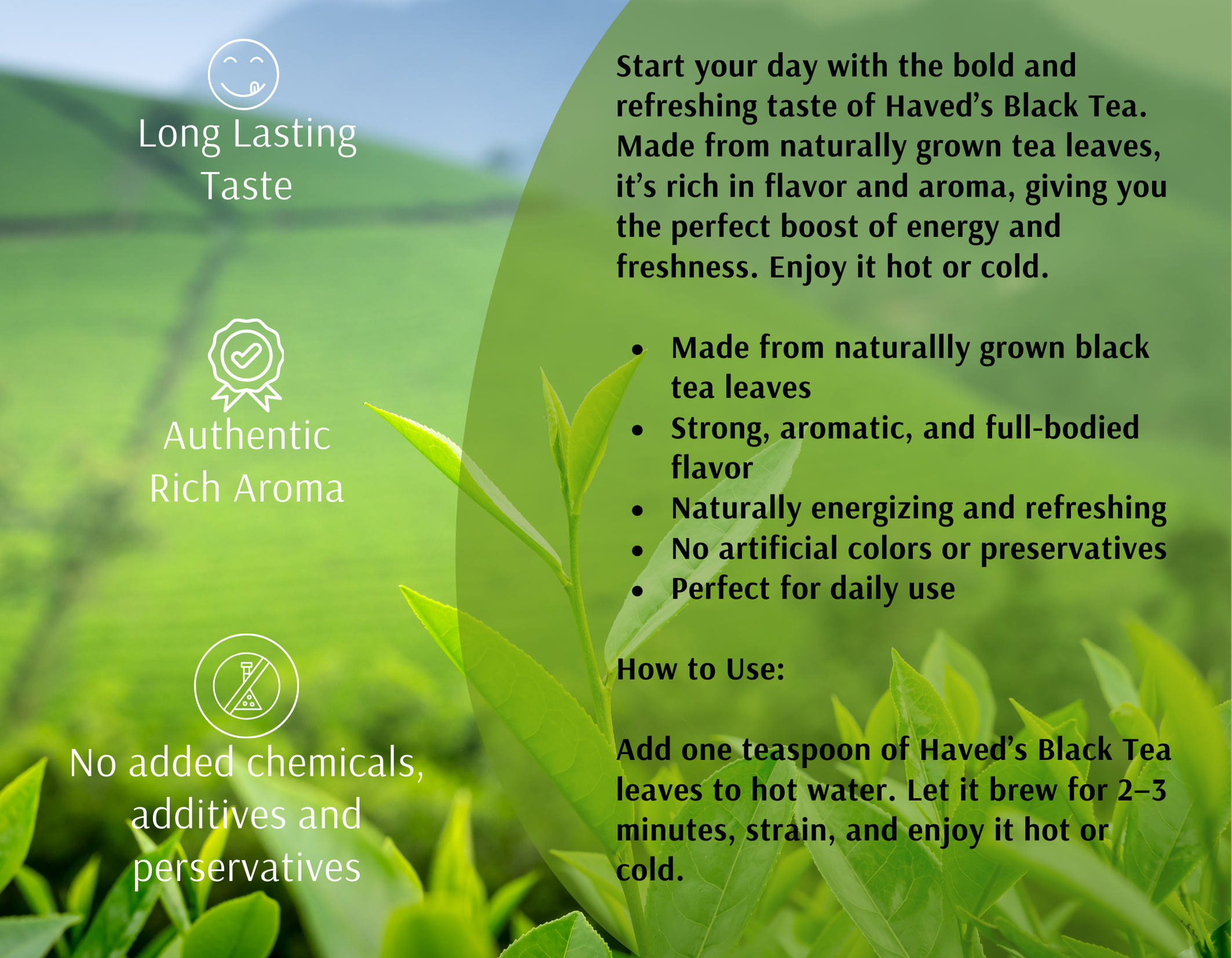 Savour the refined taste of pure estate-grade black tea, sourced from premium tea gardens and handpicked at peak freshness. Our Black Tea Leaves offer a rich, full-bodied flavour with a bright, brisk character—perfect for tea connoisseurs who appreciate depth, purity, and aroma in every sip.