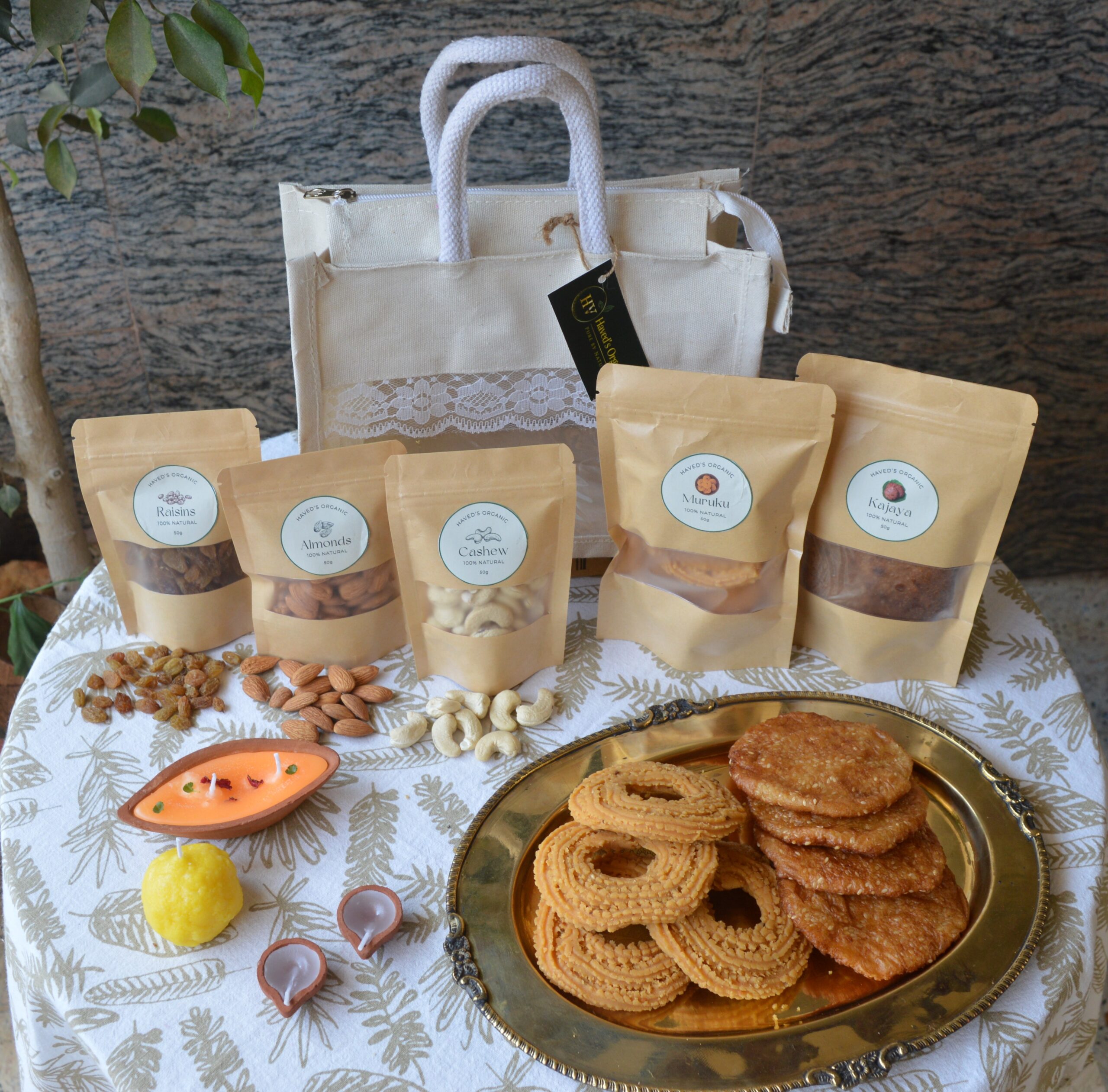The hamper you sent was absolutely lovely! The beautiful bag, the crunchy chakli, the delicious kajaya, and the assortment of dry fruits were all so thoughtfully chosen. The three little diyas added such a warm, festive touch — they made the whole gift feel so special and full of love.
