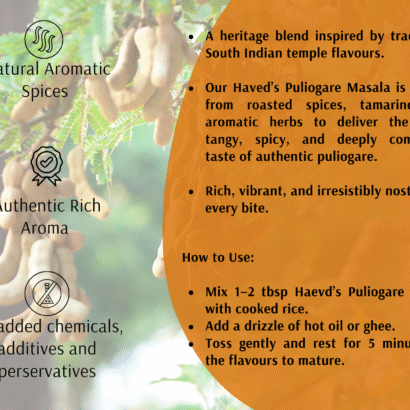 Experience the authentic taste of traditional South Indian tamarind rice with our Puliogare Mix—a gourmet blend of tangy tamarind, roasted lentils, and aromatic spices crafted to deliver temple-style flavour in minutes. Made using heirloom recipes and slow-roasted ingredients, this mix balances tanginess, spice, and intense richness to create a comforting and flavour-packed meal without effort.