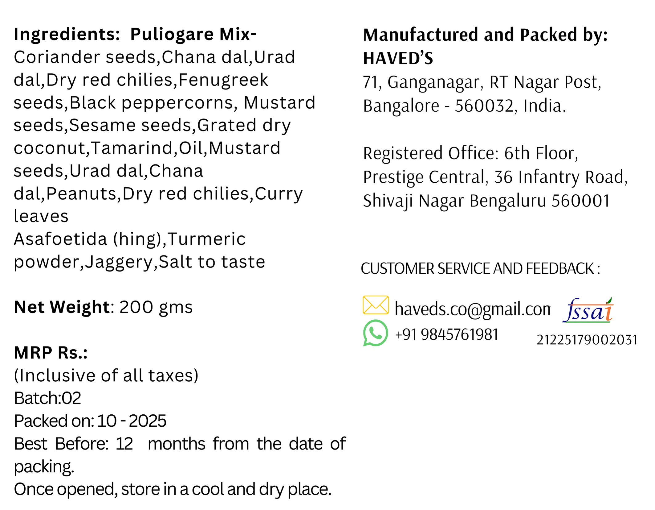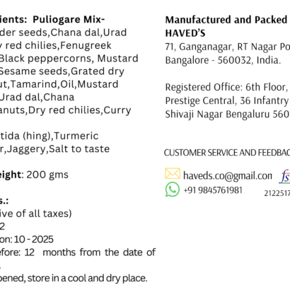 Prepared in small batches to retain freshness, natural aroma, and traditional texture, it is perfect for lunchboxes, festive offerings, prasad, or a quick meal at home. Just mix with hot ghee/gingelly oil and hot rice and enjoy a nostalgic, homestyle taste that generations have loved.